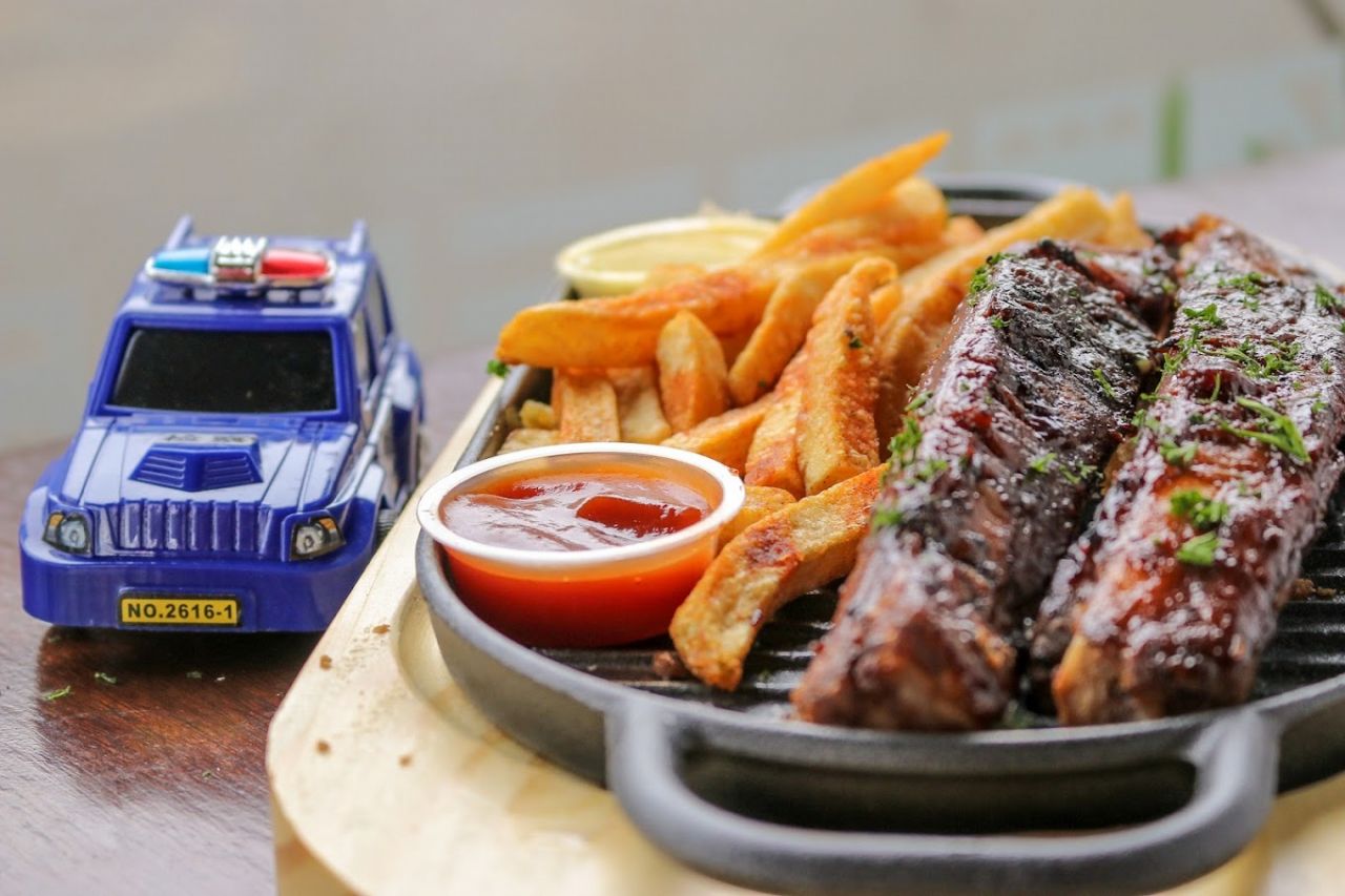 The restaurant also offers a variety of other American favourites, such as crispy fried chicken, succulent ribs, and an assortment of sides like coleslaw, fries, and onion rings. For those looking for lighter options, fresh salads and wraps are available. The decor of Big Square Lavington embodies a fun and friendly vibe, with an interior that features rustic wood, industrial accents, and quirky decor elements that add to the casual, urban feel of the restaurant. The spacious layout includes indoor and outdoor seating options, making it perfect for any weather.